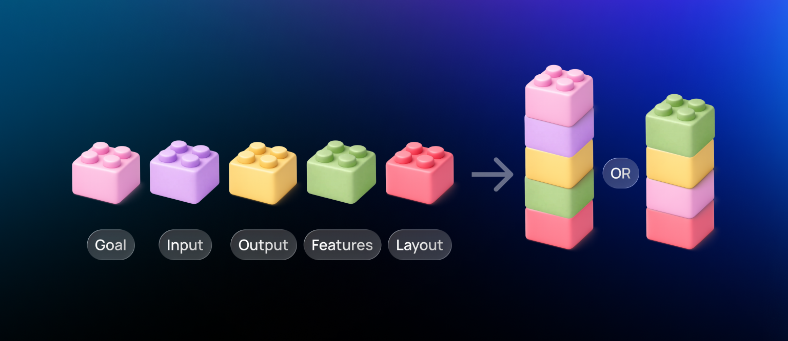Goal → Input → Output → Features → Layout